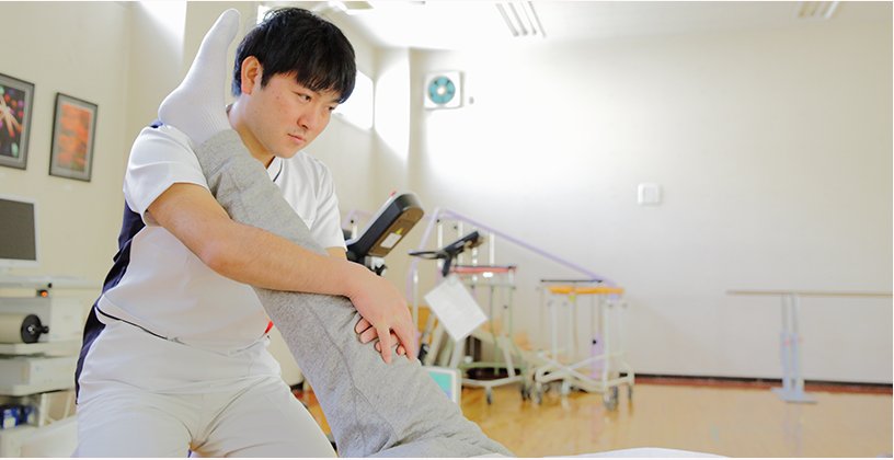 専門知識と技術を生かし術後早期からの座位・立位を中心とした一対一の理学療法提供により、身体機能の低下を最小限に予防するための取組みを行っています。