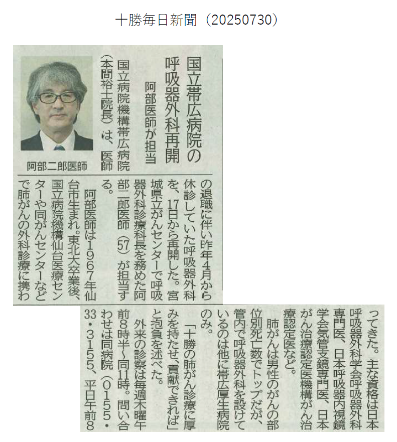 「呼吸器外科再開についてのお知らせ(PDF)」